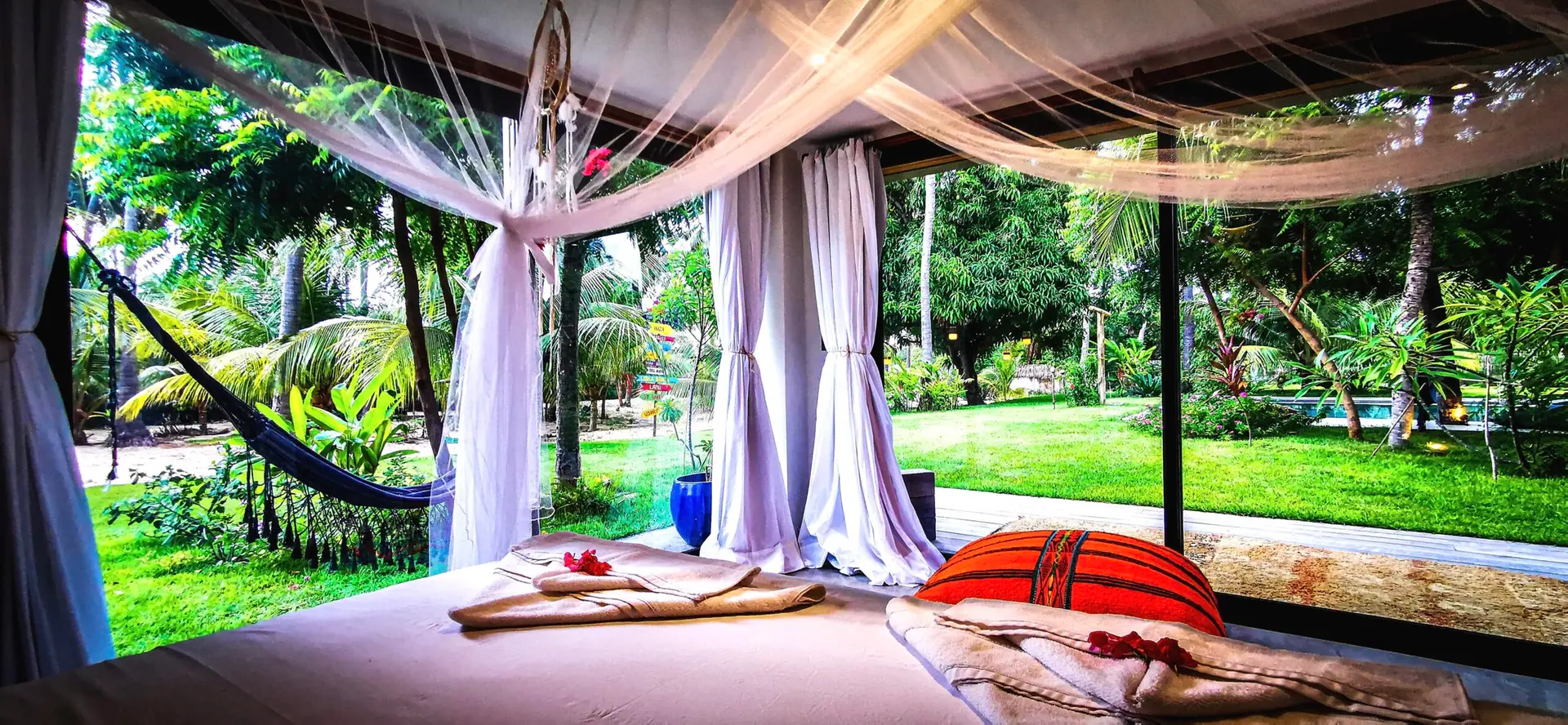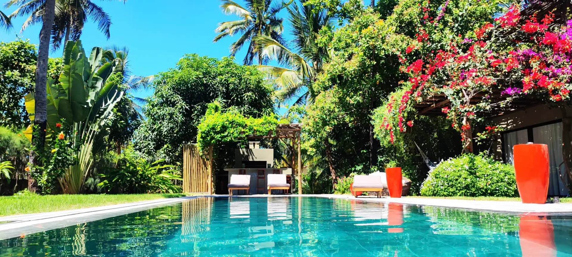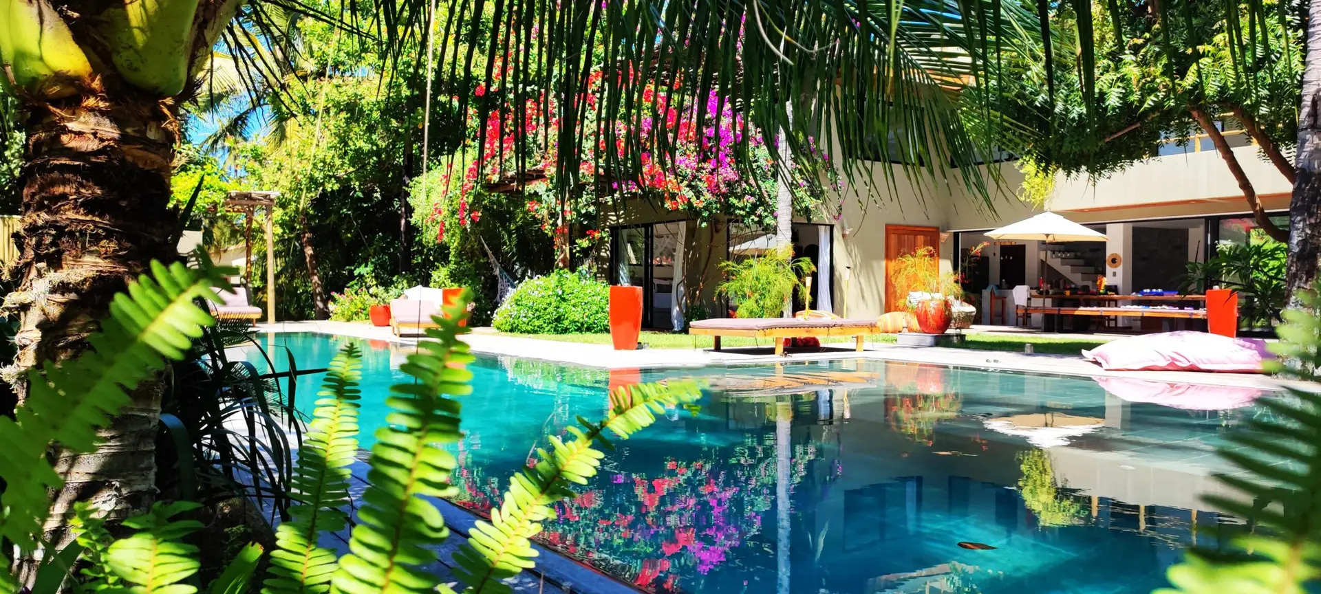 A apenas 6 minutos a pé da praia e do centro da cidade, a Casa’ Lex está escondida em um coqueiral de 5.000 m² e cercada por um jardim exótico que a torna um verdadeiro refúgio de paz.